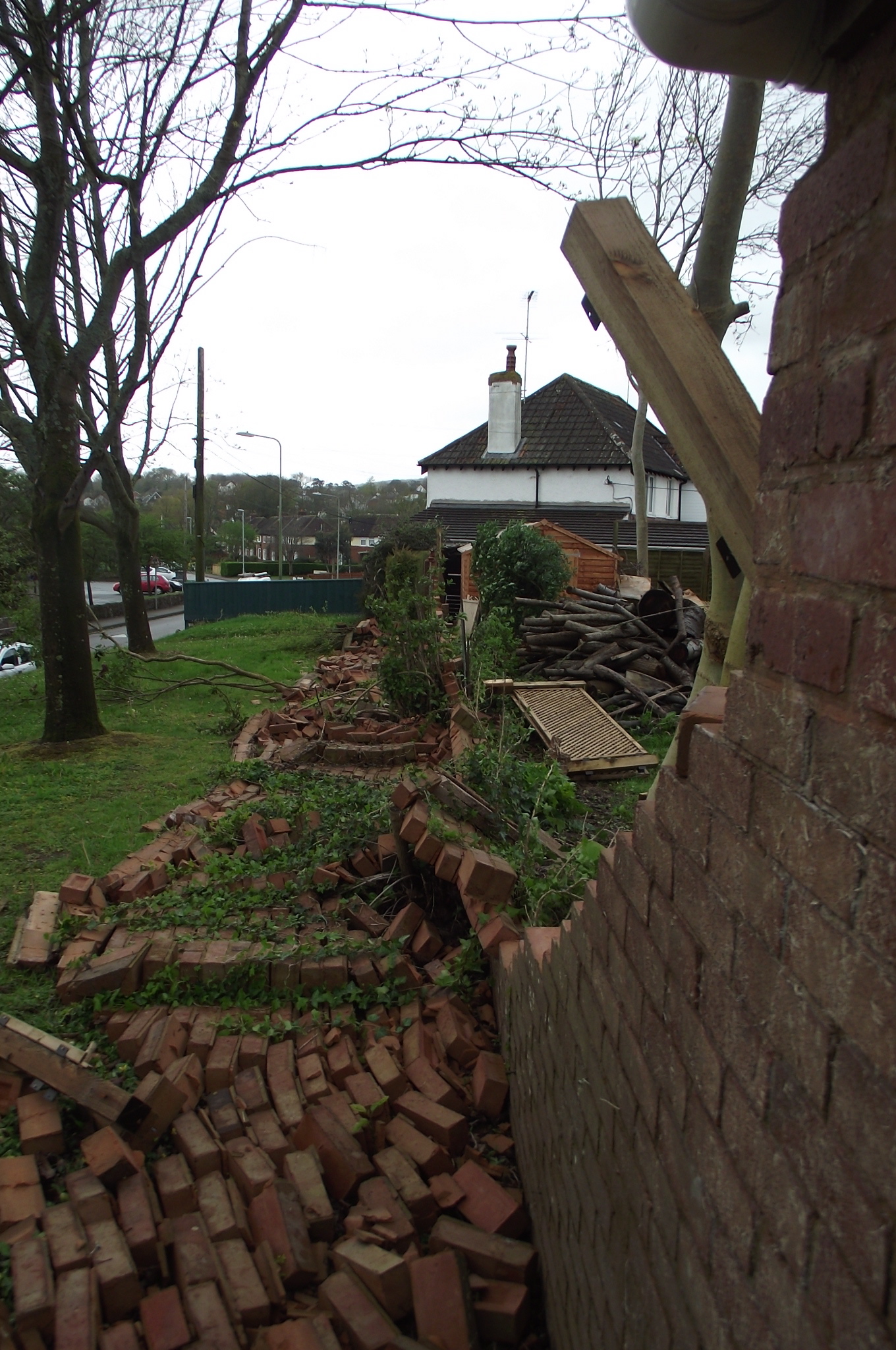 We woke up one morning and our 80ft, 6ft high boundary wall had fallen flat overnight, taking a beautiful mature Lilac with it. Luckily we had planned but not yet planted the bed behind the wall, so £300 of plants were saved, as was my precious greenhouse. Phew.