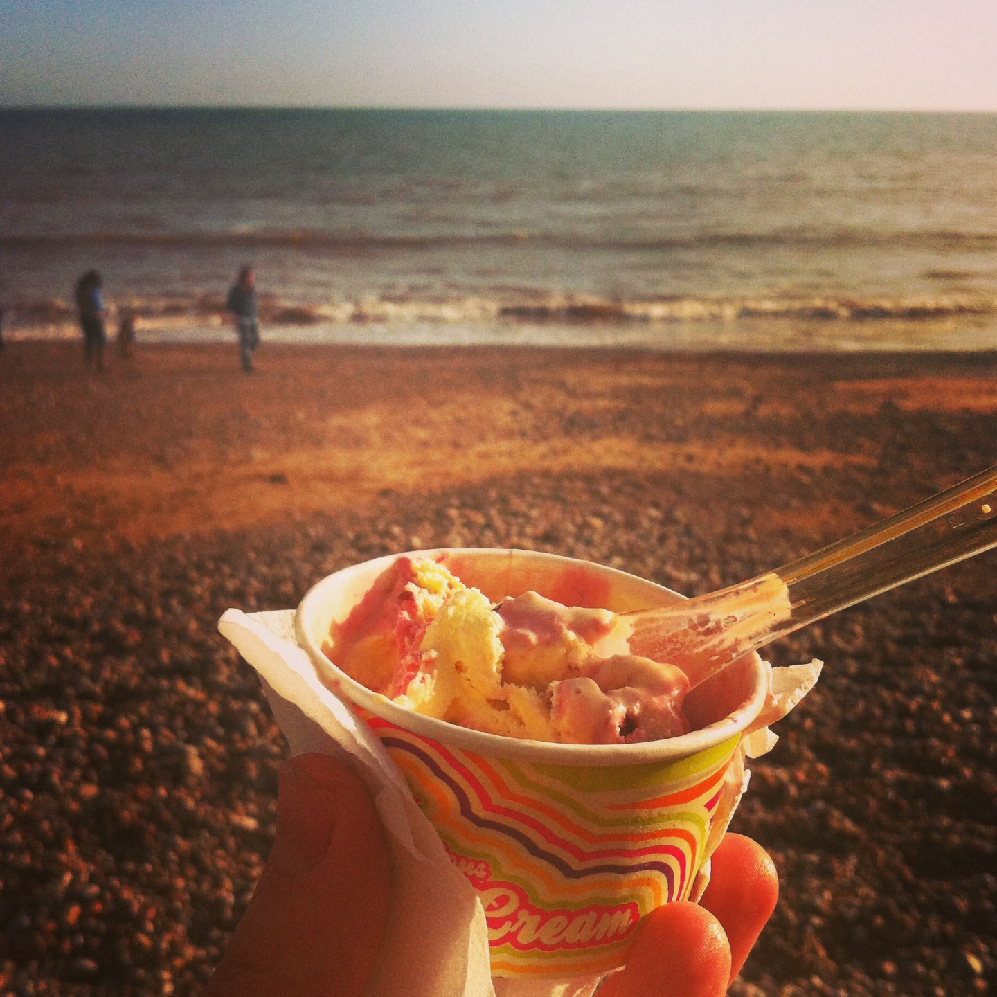 That readers, is why I live by the sea: a pot of organic clotted cream and blackcurrant ice cream, sat staring out across the English Channel whilst the OH and Country Bebe throw pebbles into the sea and try and catch seagulls. Add 15 degrees or so and it could have been summer.