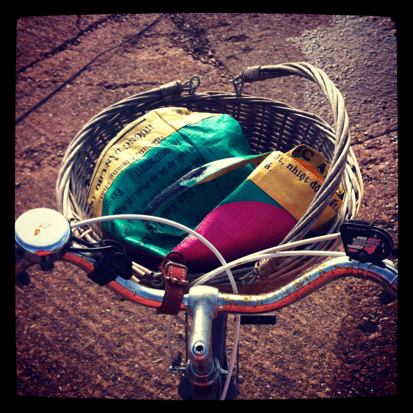 Our morning commute to the beach with bananas, windfall compote and yoghurts safely stowed.