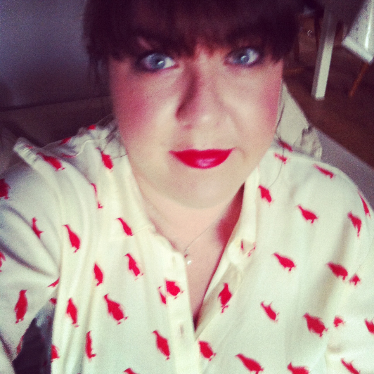 Then, to top it all off I went out drinking. Yes, drinking. Not to excess, but proper grown up drinks with a girlfriend, a good measure of pink wine and a sprinkling of bourbon. The Burberry lippie got another outing, as did my new favourite penguin shirt.