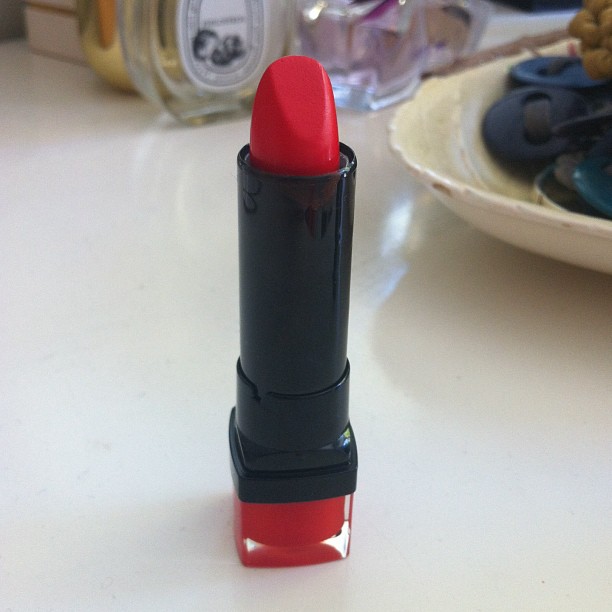 As it’s ‘buy one get the 2nd half price’ on make-up at the mo, I also had a little lippie splurge – picking up a Rimmel ‘By Kate’ in a vintagey nude rose (my favourite Burberry Lip Mist in Field Rose is down to the barrel); another classic red with orange tones from Bourjois (below), as well as a glossy, punchy pink from their Limited Shine Edition that is nourishing and softening like a balm with a buildable pop of colour. I’ve worn it non-stop for the last two days and it’s already a ‘love’ product.