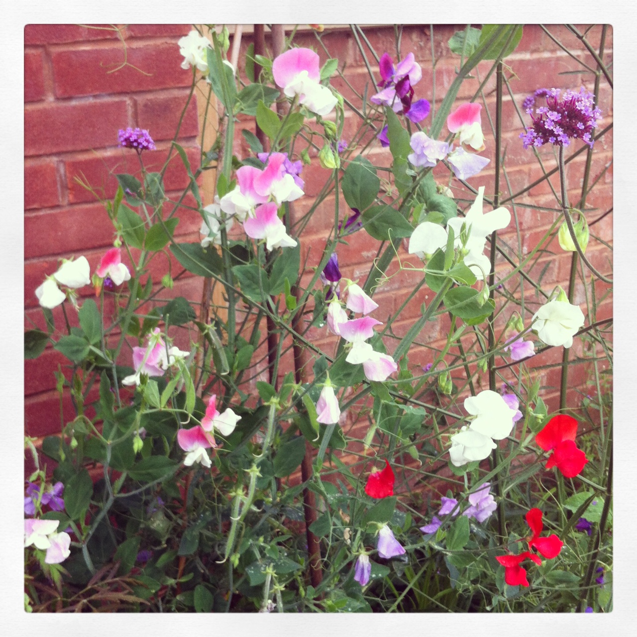 We build some wigwams out of old canes we found in the shed and scattered some sweet pea seeds around the base. They grow like weeds and best of all, I get a fragrant posy for my bedside table three times a week.