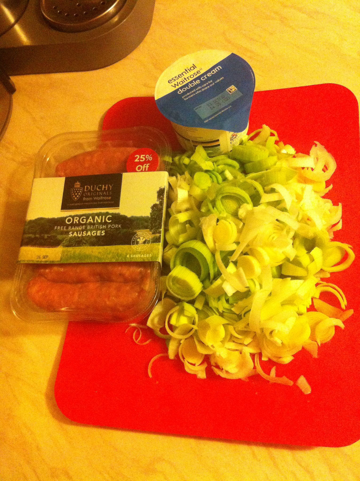 100-120ml of double cream (you want the cream to come halfway up the sausages, this did it for us).