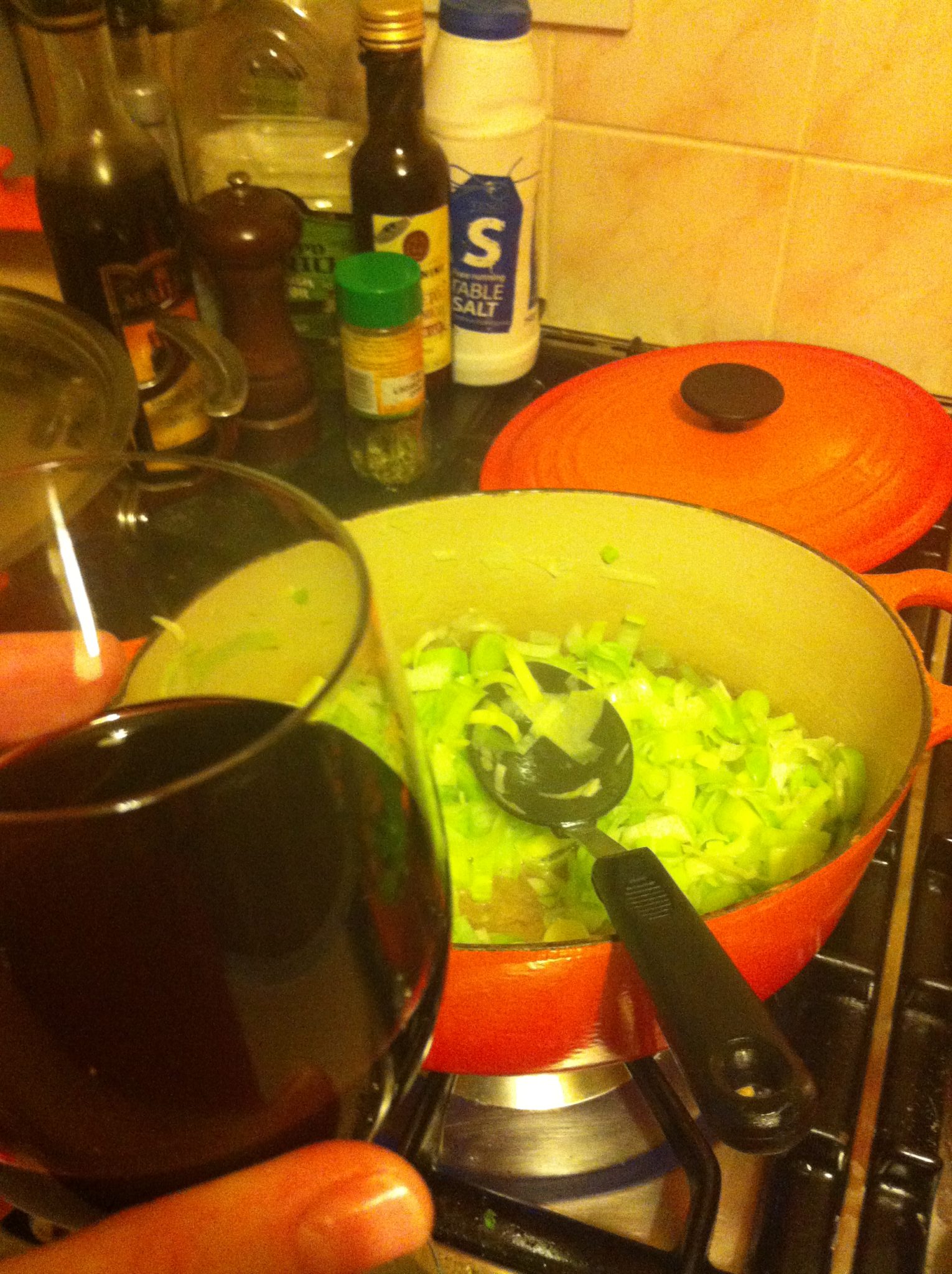 I apologise in advance for the photos (and the much-loved, but battered, Le Creuset). The lighting in our kitchen is brutal, but I figured the snaps are meant to be illustrative rather than works of art, so….