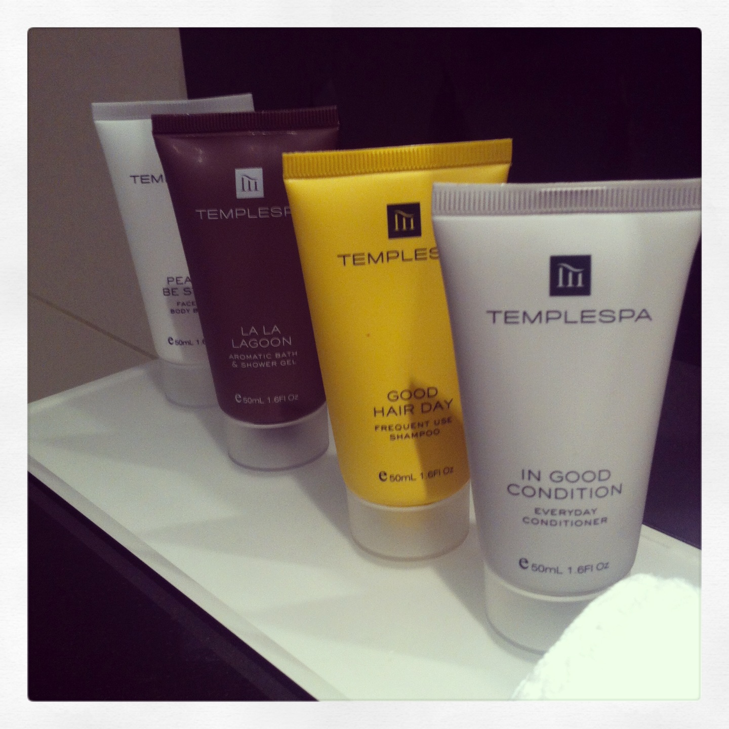 Back in my room, I thought a bath by myself might only exacerbate my Country Bebe pangs (CB and I still share the tub every night), but it was HEAVENLY. Mainly due to the generous sized Temple Spa products in the bathroom.