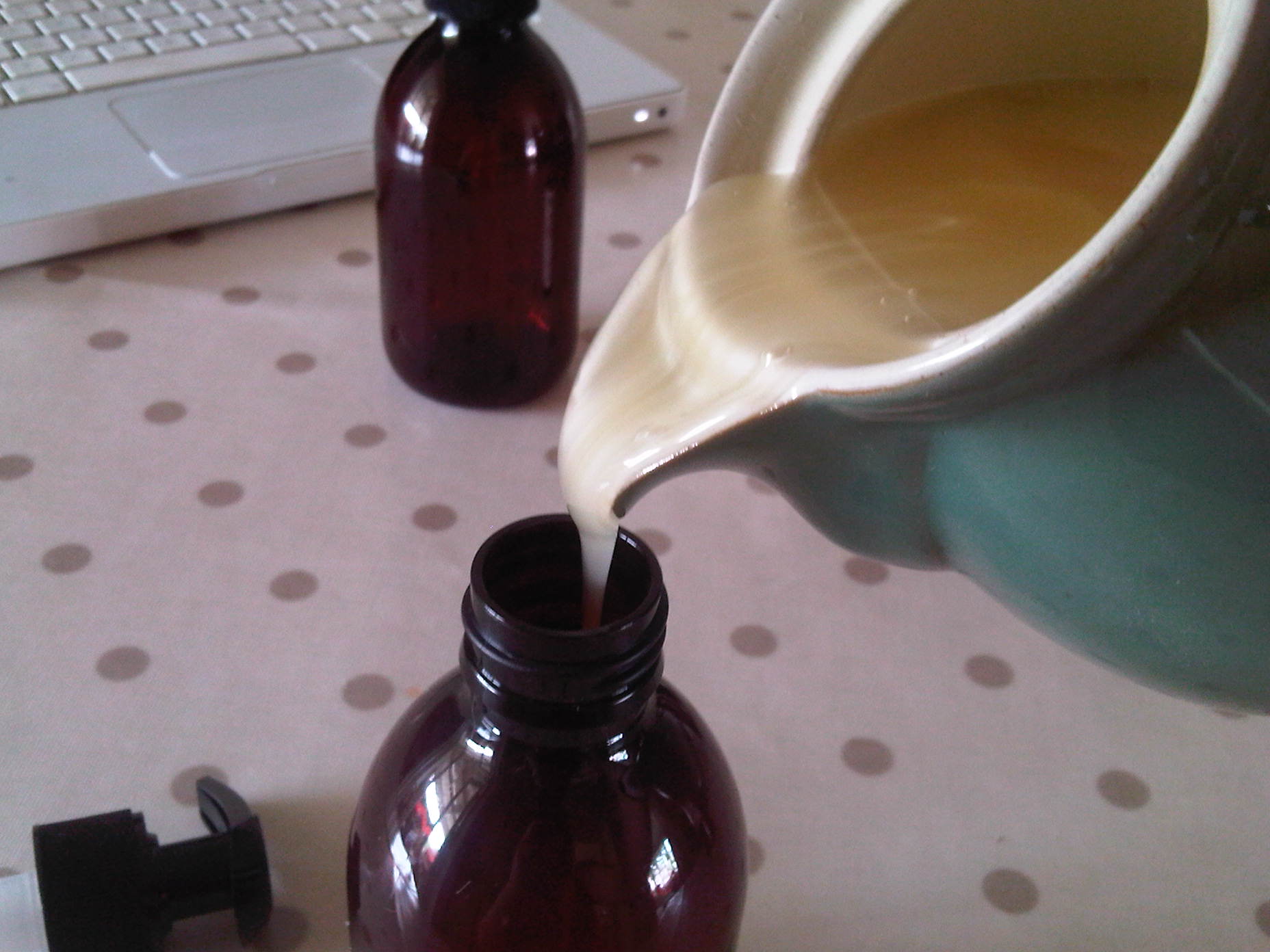 For batch four I decided to throw a curve ball. I wanted a good cleansing shampoo, but also one that would nourish while it cleaned. So, I added a glug of good extra virgin olive oil to the mix for added pampering for my dry-prone locks. The finished product was immediately more creamy and luxuriant.
