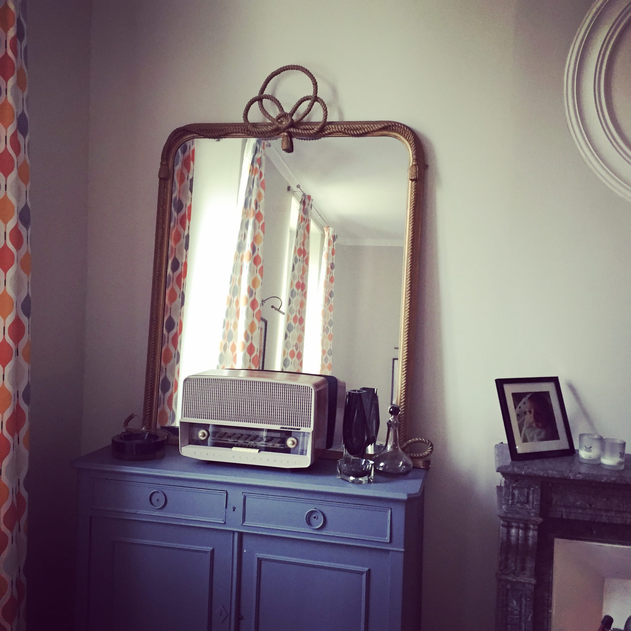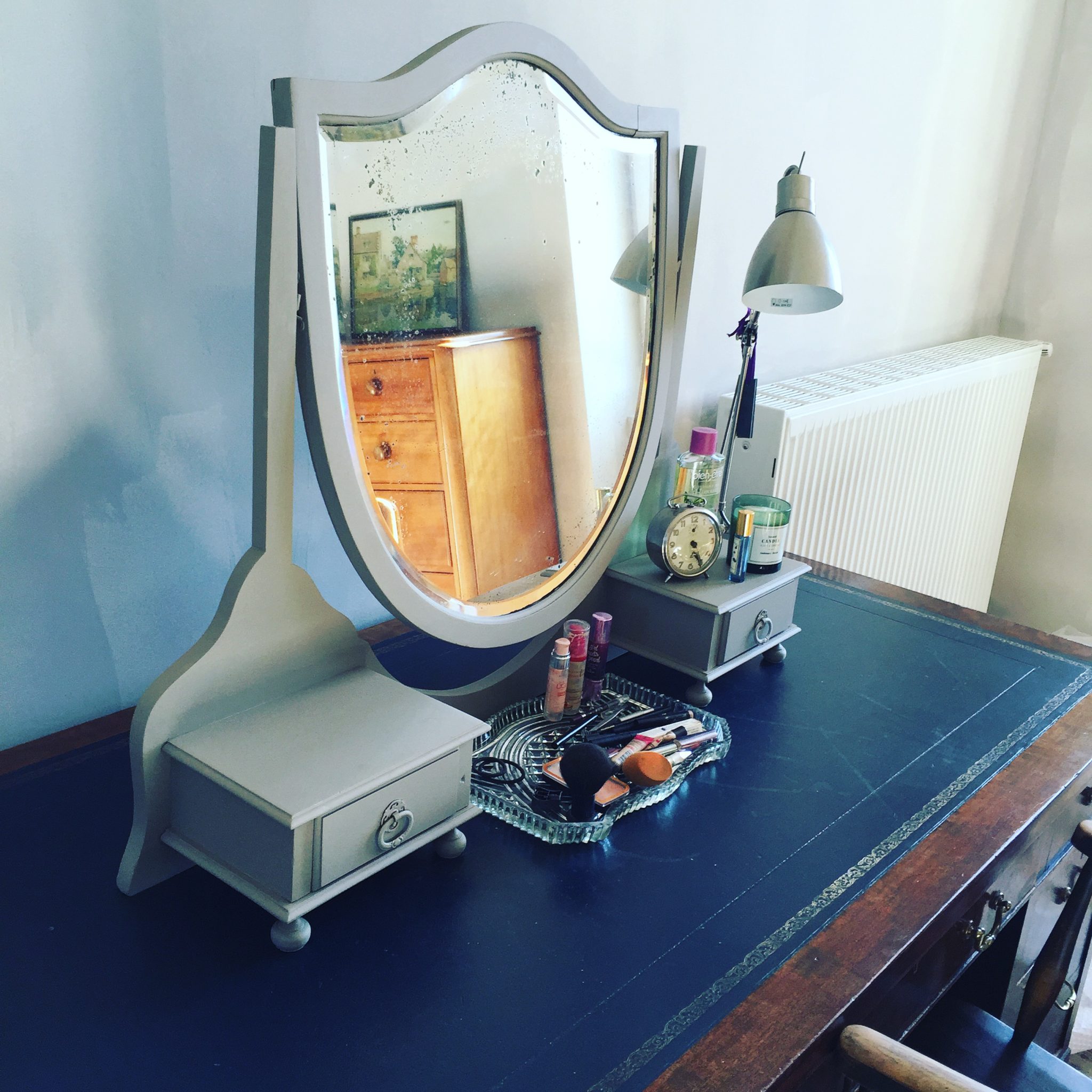 I painted the hideous yellow bathroom cabinets in their amazing putty coloured ‘Algonquin’ for a quick fix till we renovate the bathrooms, and this bargain 10€ mirror for my dressing table: