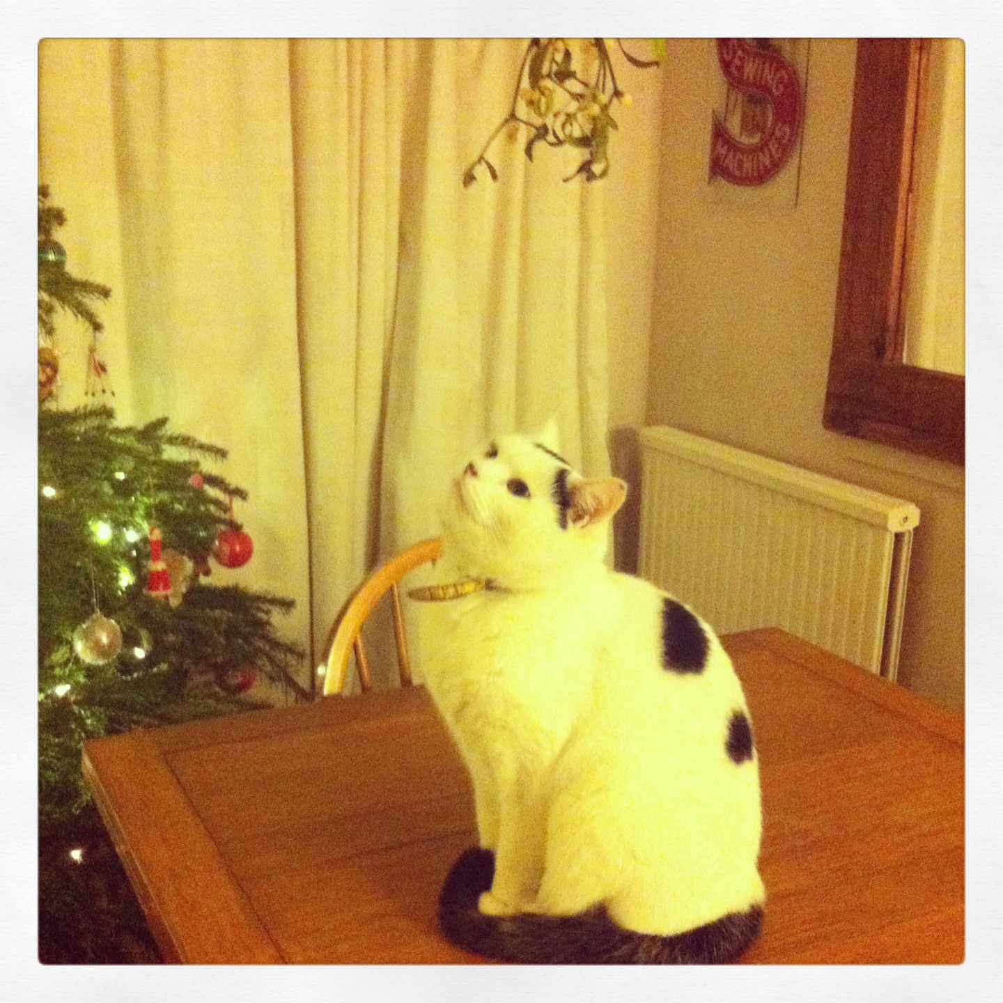 A gratuitous ‘pet at Christmas’ shot – Graziano looking cute under the mistletoe.