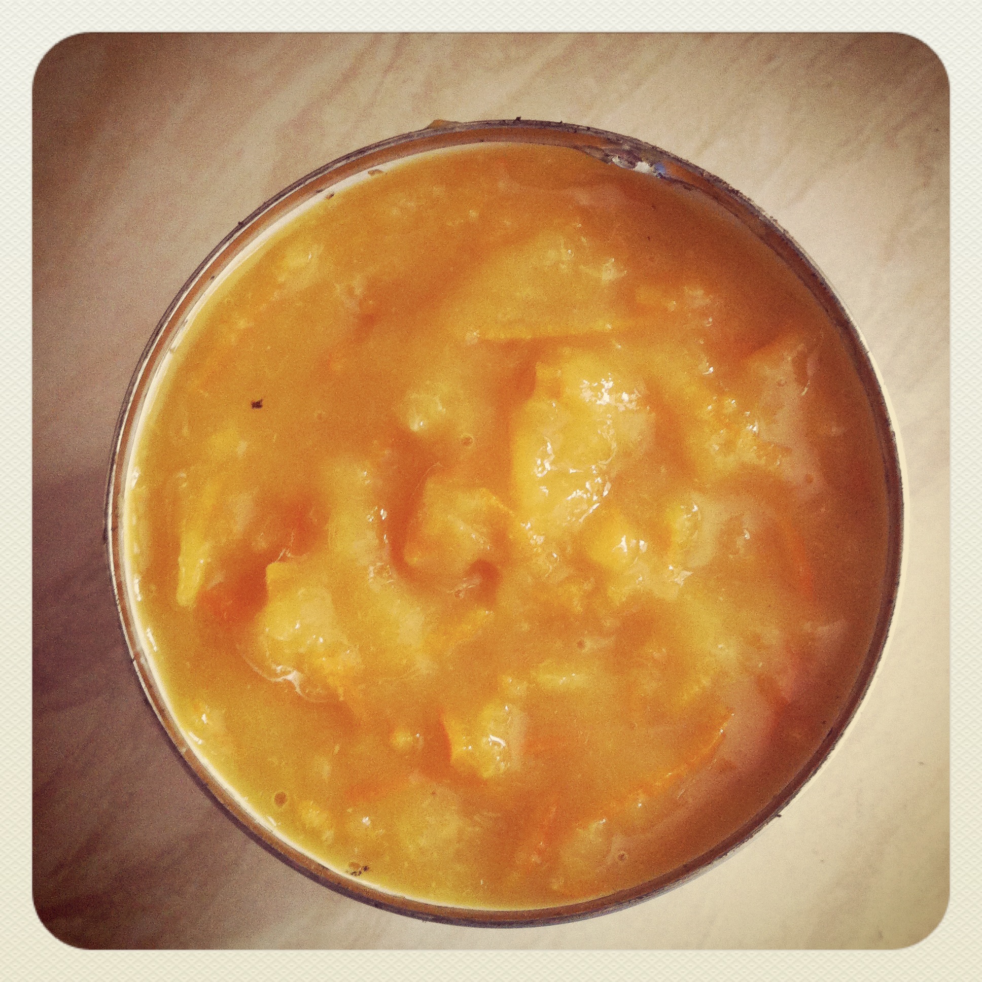 Look away now if you are a by-the-book jam maker as this will probably make you scoff: I used oranges from a tin.