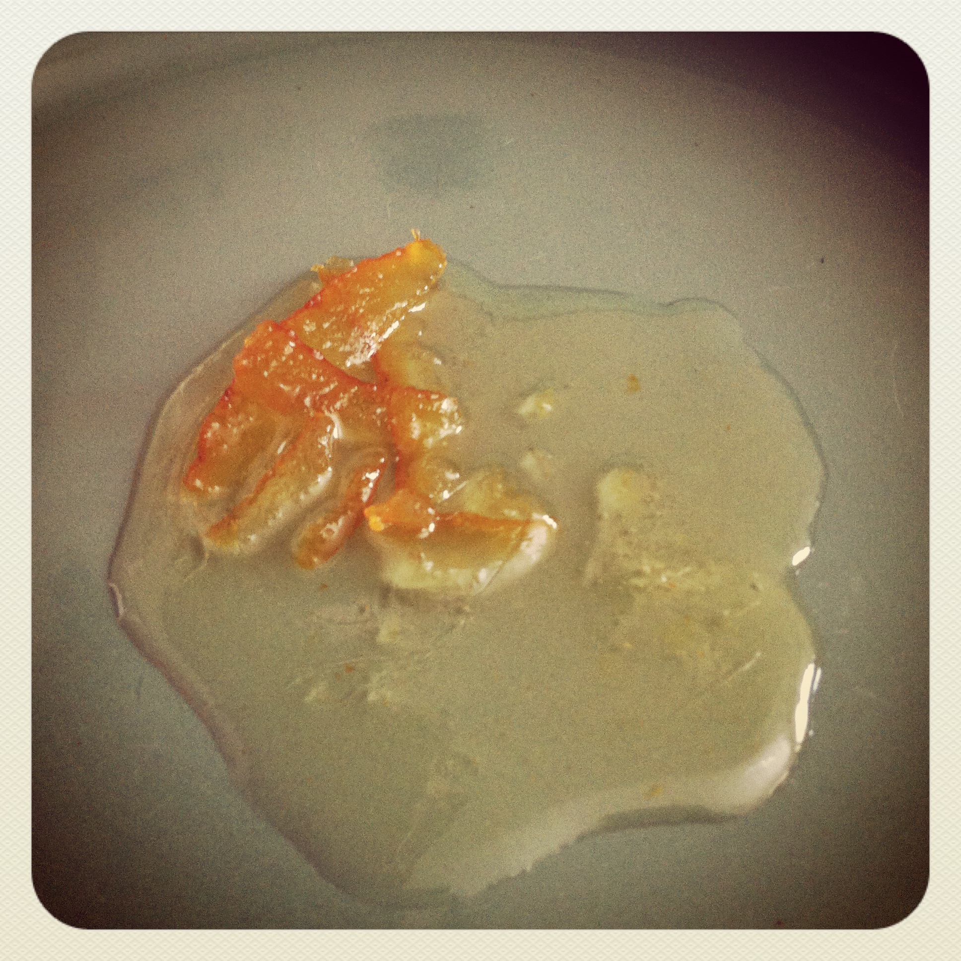 After 15 mins take the pan off the heat and remove the saucer from the freezer. Drop a teaspoon of the marmalade onto it. If after 2 mins you push the dollop of marmalade and it wrinkles, you’re done. If not, return the the pan to the heat for another 2-3 mins then test again.