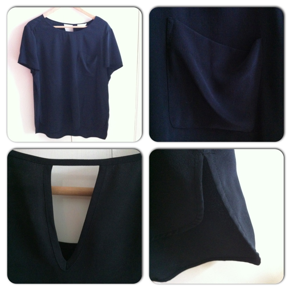 I’ve been looking for a smart, black top to wear with my new season obsession: print trousers. This loose-fit washed silk, black t-shirt is the perfect balance. A staple for my SS13 work wardrobe. I love the dropped back and keyhole detail.